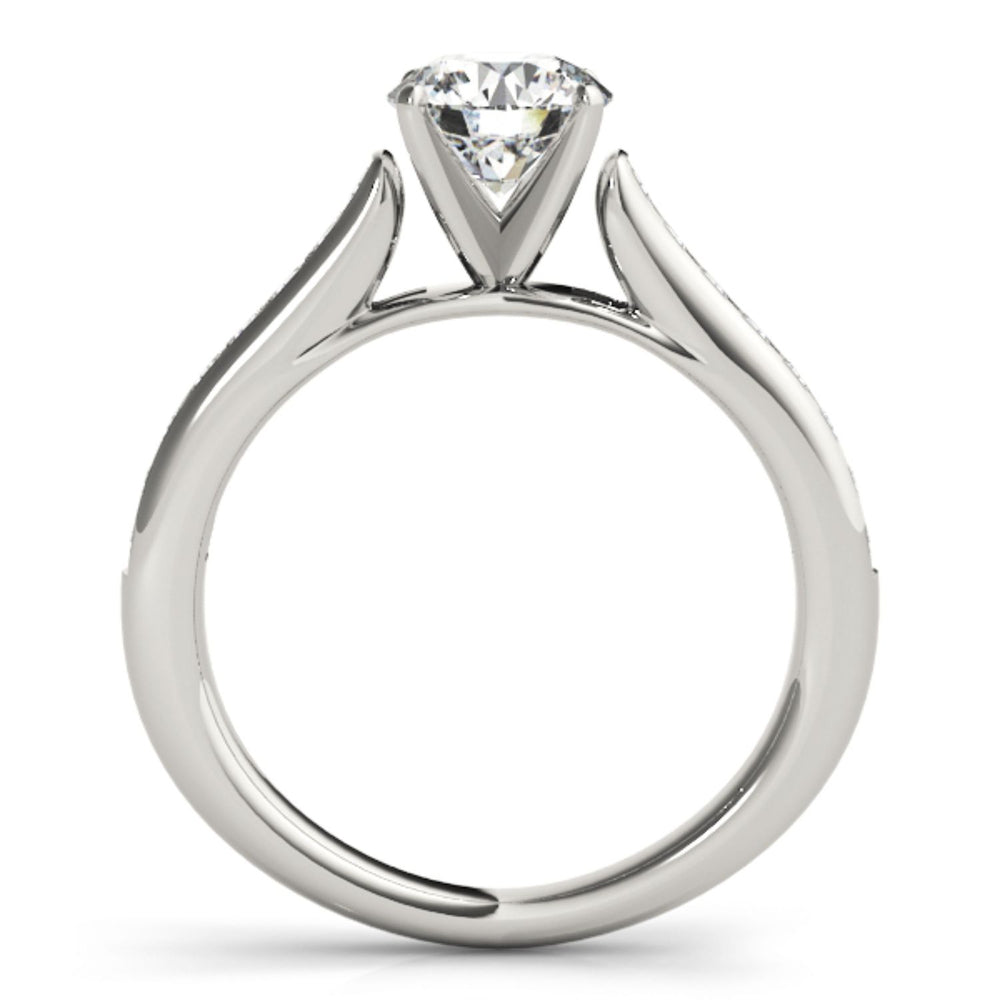 Der zentrale Diamant ist fachmännisch in einer klassischen Krappenfassung gehalten , während die Seitensteine elegant in Kanalfassungen entlang der Ringschiene angeordnet sind und so für ein schlankes, raffiniertes Finish sorgen. Dieser Ring ist mit IGI-zertifizierten, im Labor gezüchteten Diamanten in der Farbe E und der Reinheit VVS besetzt und besticht durch außergewöhnliches Feuer, Reinheit und atemberaubendes Funkeln.