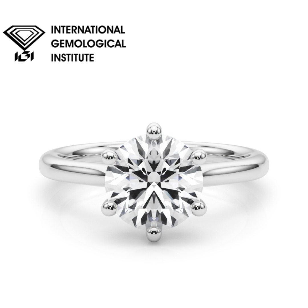 IGI Lab-Grown Solitaire Engagement Ring, Six Claw Set Round Cut Diamond Ring, D Color VVS Clarity