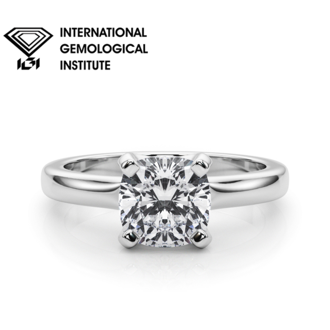 IGI Lab-Grown Cushion Diamond 4 Prong Solitaire Engagement Ring, D Color VVS Clarity
