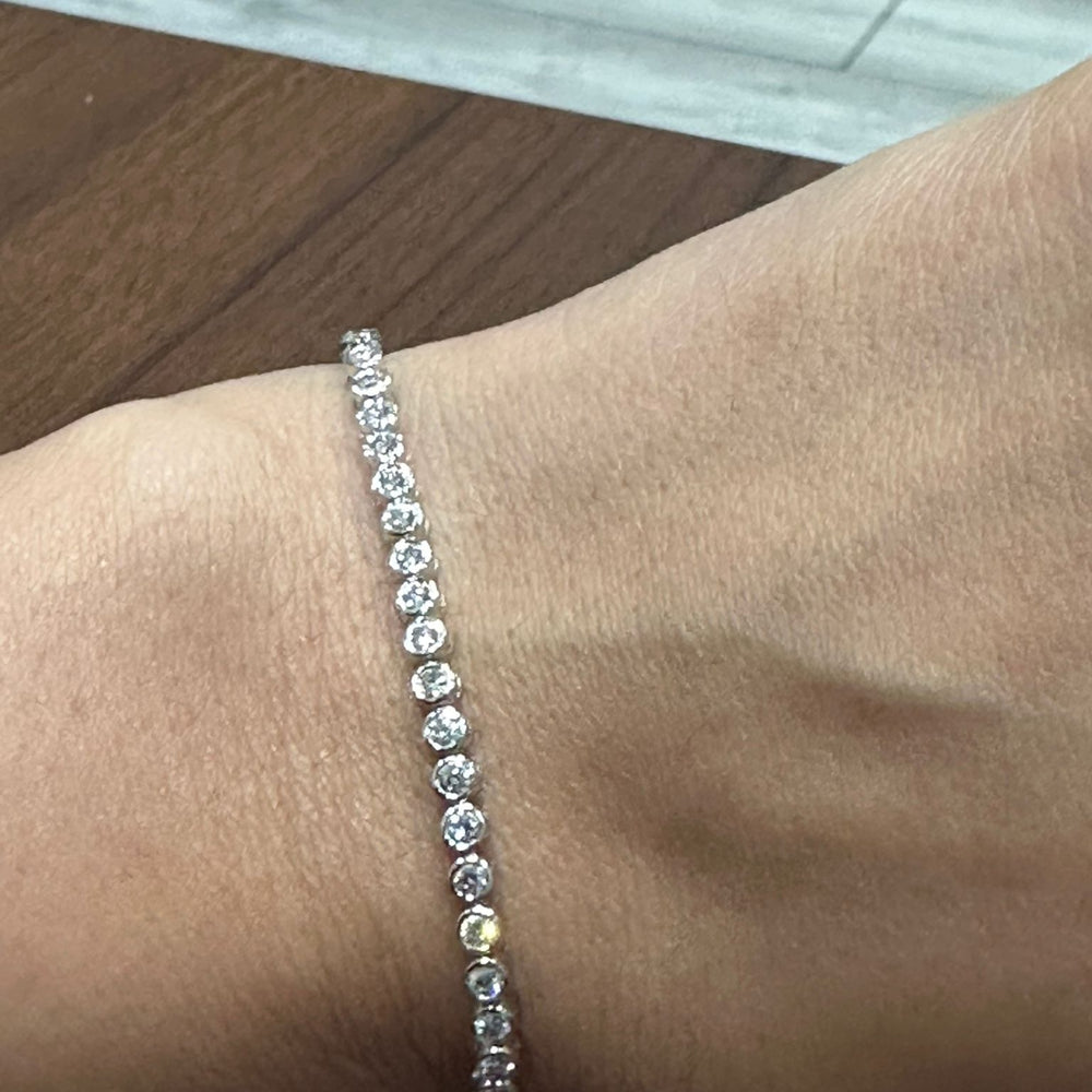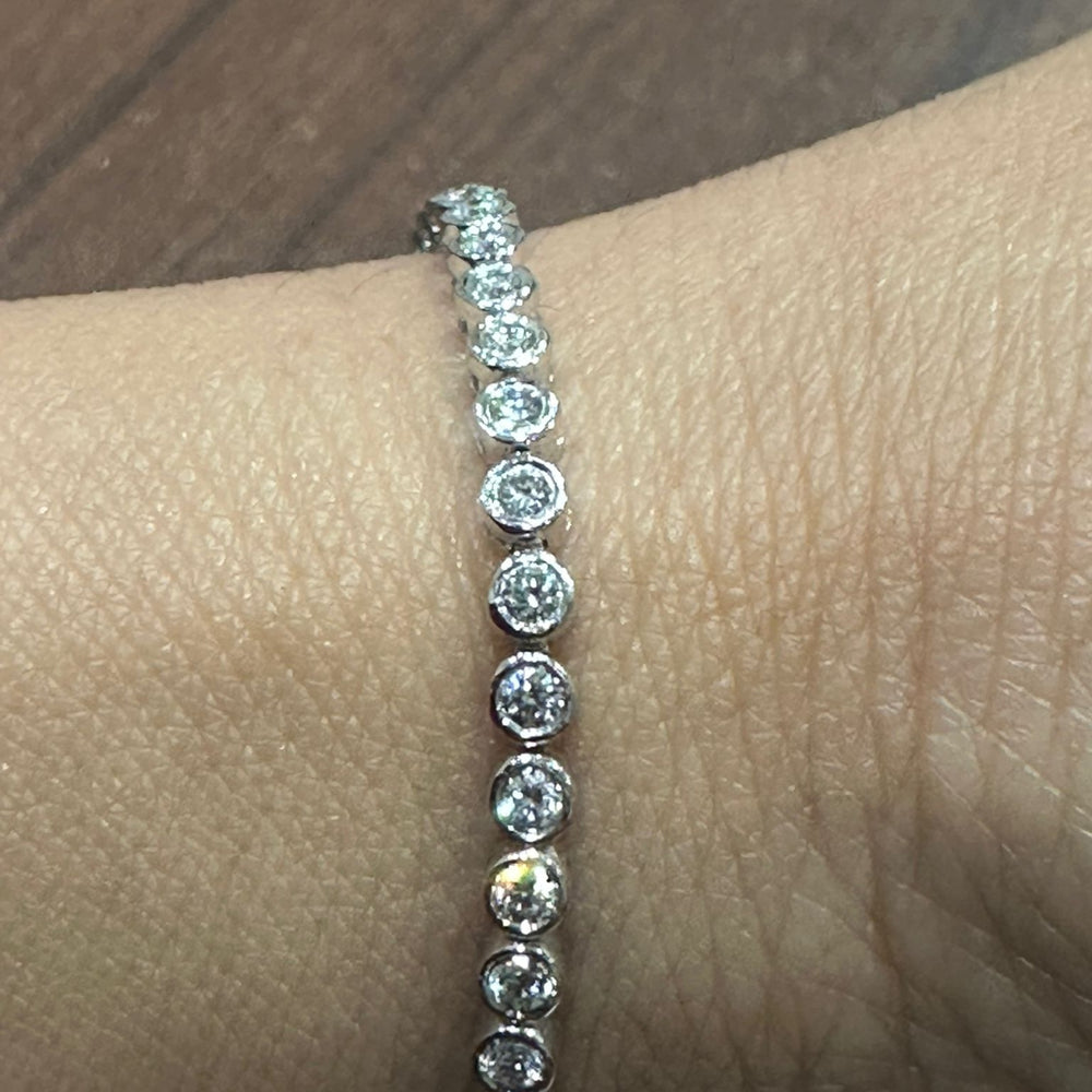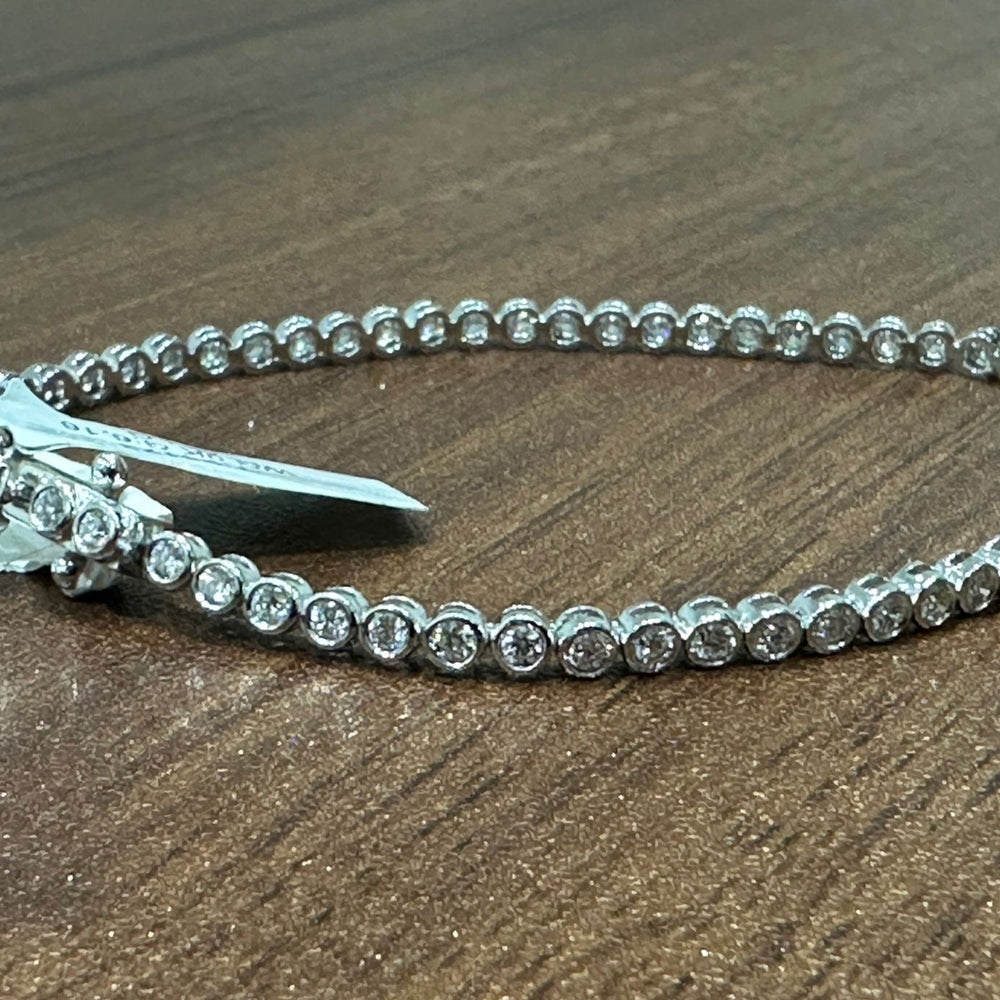Mit einem Gesamtgewicht von 2,00 Karat funkelt dieses Armband aus jedem Blickwinkel. Die Diamanten wurden sorgfältig auf die Farbe DE und die Reinheit VS geprüft und bieten außergewöhnliche Brillanz, nahezu farblose Schönheit und bemerkenswerte Klarheit. Die Länge von 17,8 cm (7 Zoll) sorgt für angenehmen Tragekomfort, während der Kastenschließe mit Sicherheitsverschluss sicheren Halt gewährleistet.