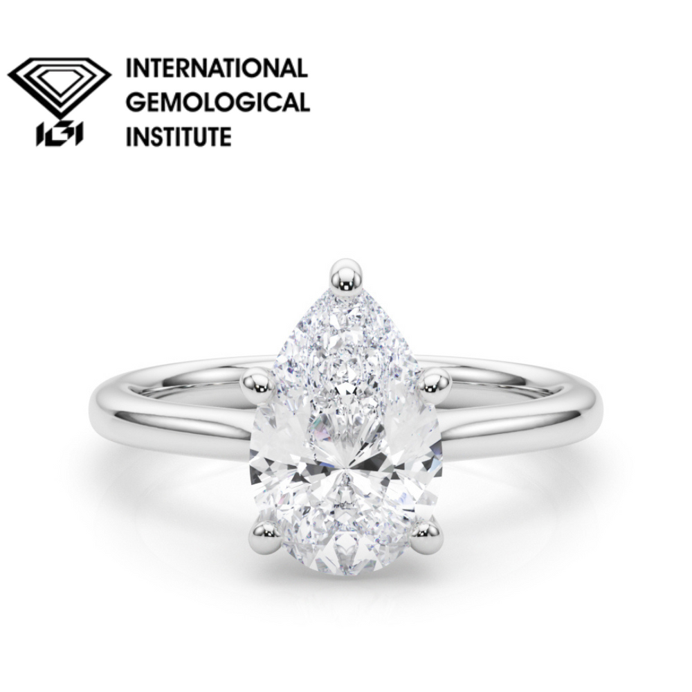 Feiern Sie die Liebe mit dem Verlobungsring mit einem im Labor gezüchteten Diamanten im Solitär-Schliff . Der atemberaubende Diamant in Tropfenform ist in einer 5-Krappen-Fassung gefasst und besticht durch die Farbe D und die Reinheit VVS . Erhältlich in Größen von 0,50 ct bis 2,00 ct und gefertigt aus 9- oder 18-karätigem Weiß-, Gelb- oder Roségold oder Platin , ist er zeitlos, elegant und nachhaltig.