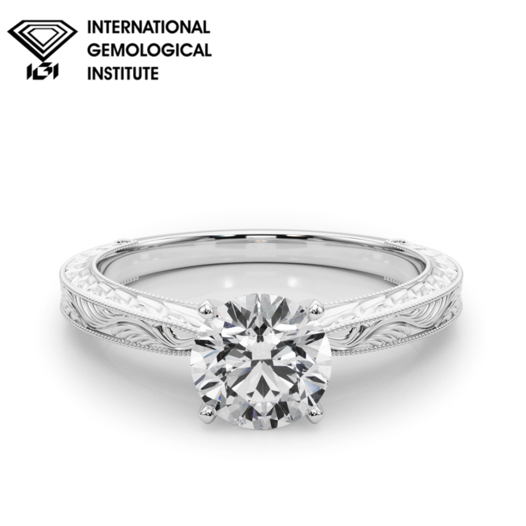IGI Lab-Grown Round Cut D-VVS Diamond Solitarie Engagement Ring.