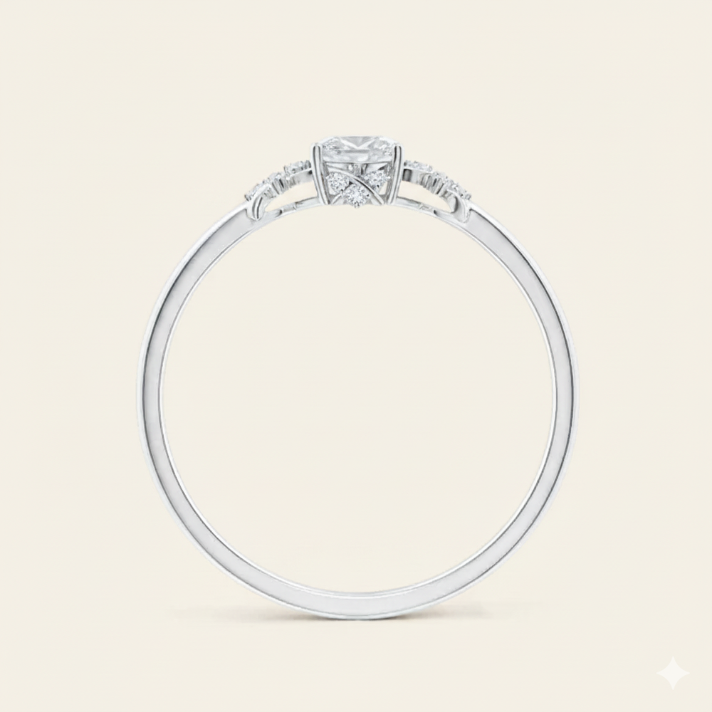 Feiern Sie Brillanz mit unserem im Labor gezüchteten Solitär-Ovaldiamant-Ring mit gekreuztem Diamantenbesatz.