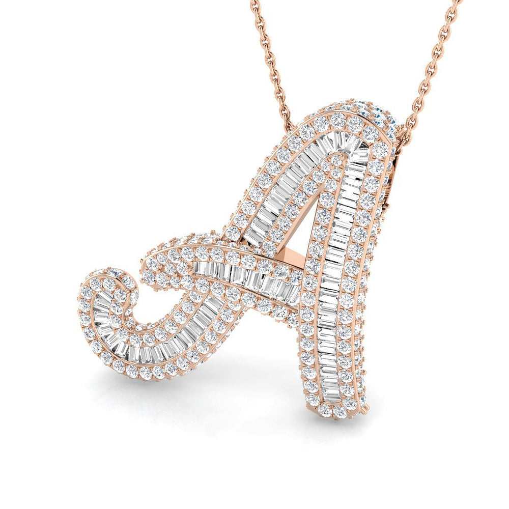 Design: Schreibschrift-Initial „A“ mit Baguette- und Rundschliffdiamanten