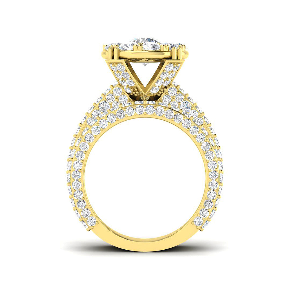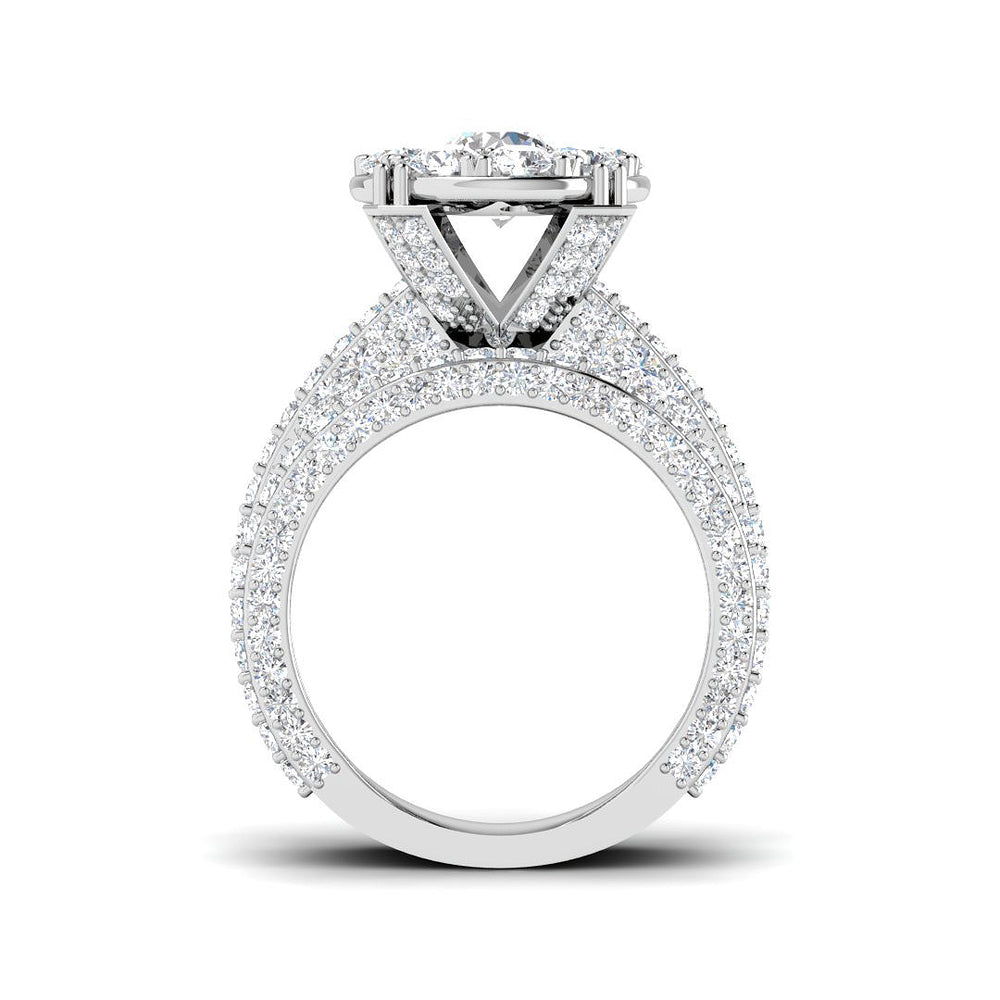 This design seamlessly combines the classic charm of a solitaire with the brilliance of surrounding diamonds, symbolizing unity, love, and enduring beauty.