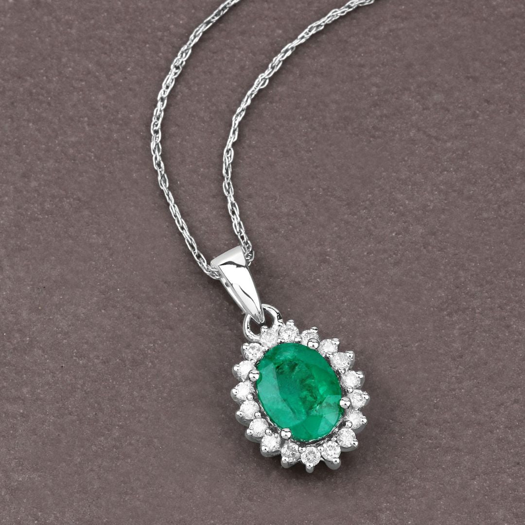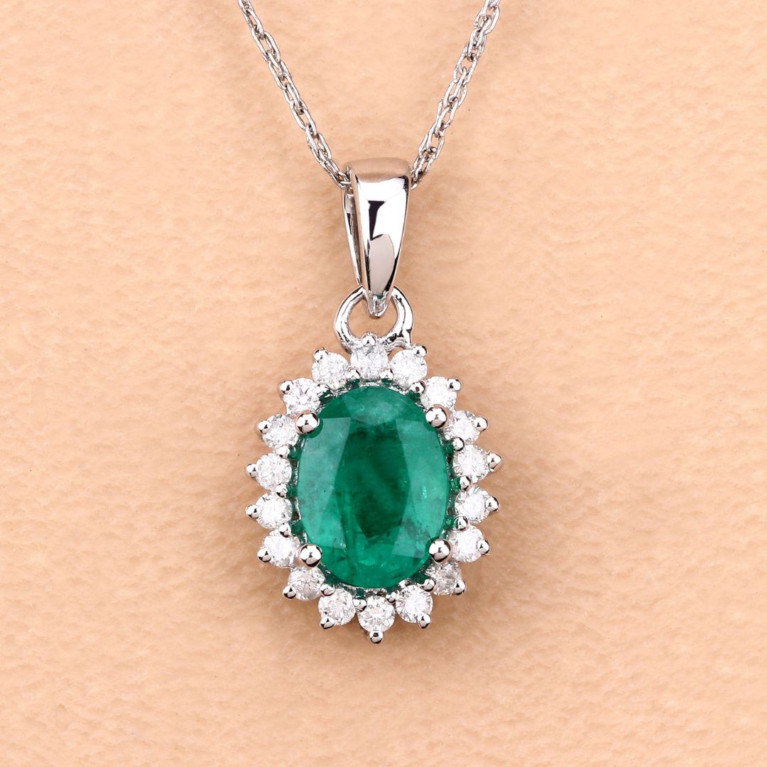 Oval Shape Emerald Pendant Lab Diamonds In Silver