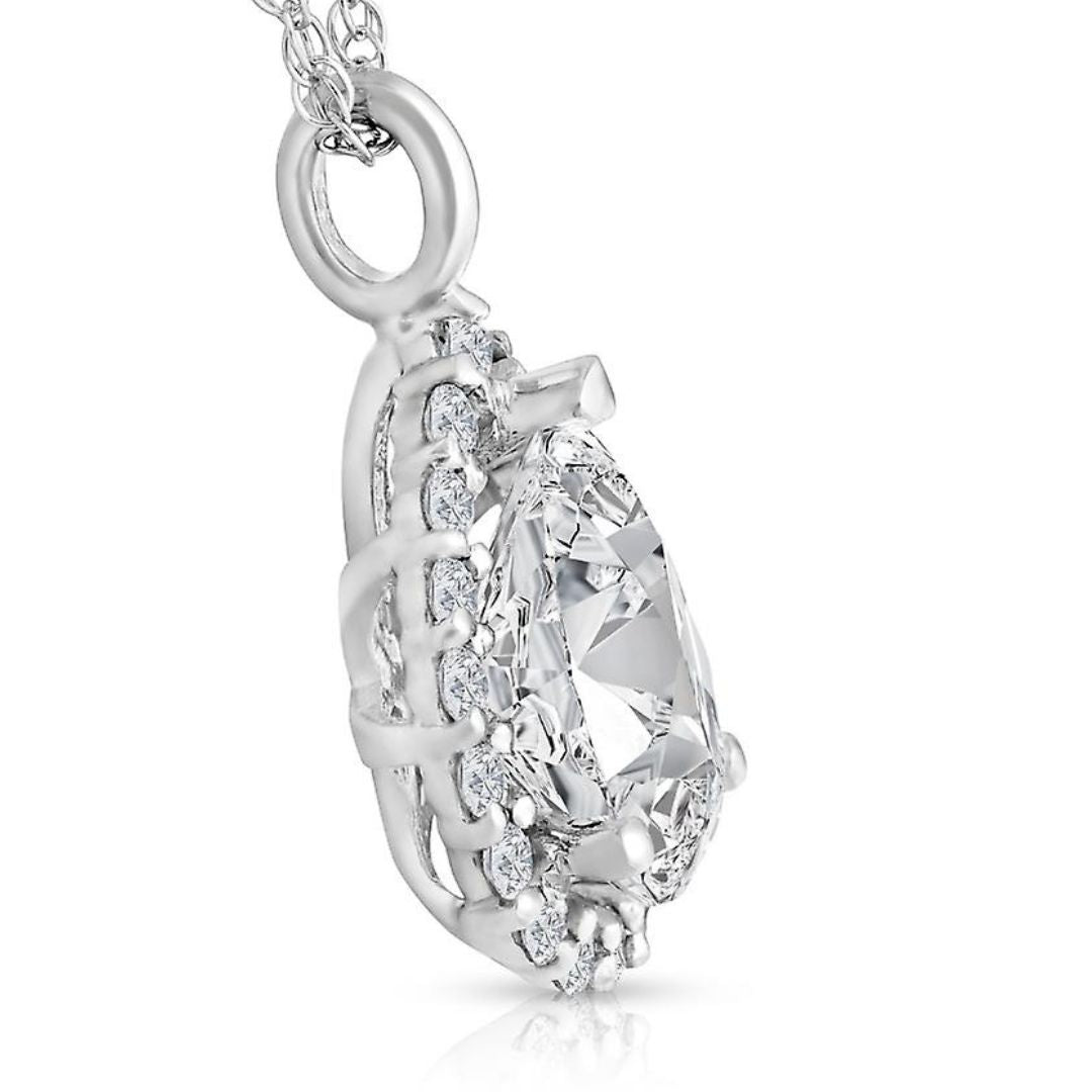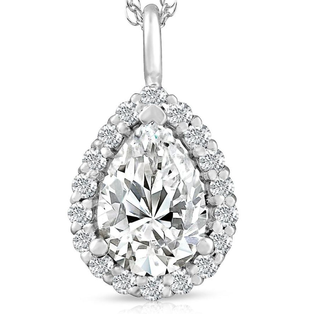0.10Ct Pear Lab Grown Diamond Halo Pendant Necklace in White Gold