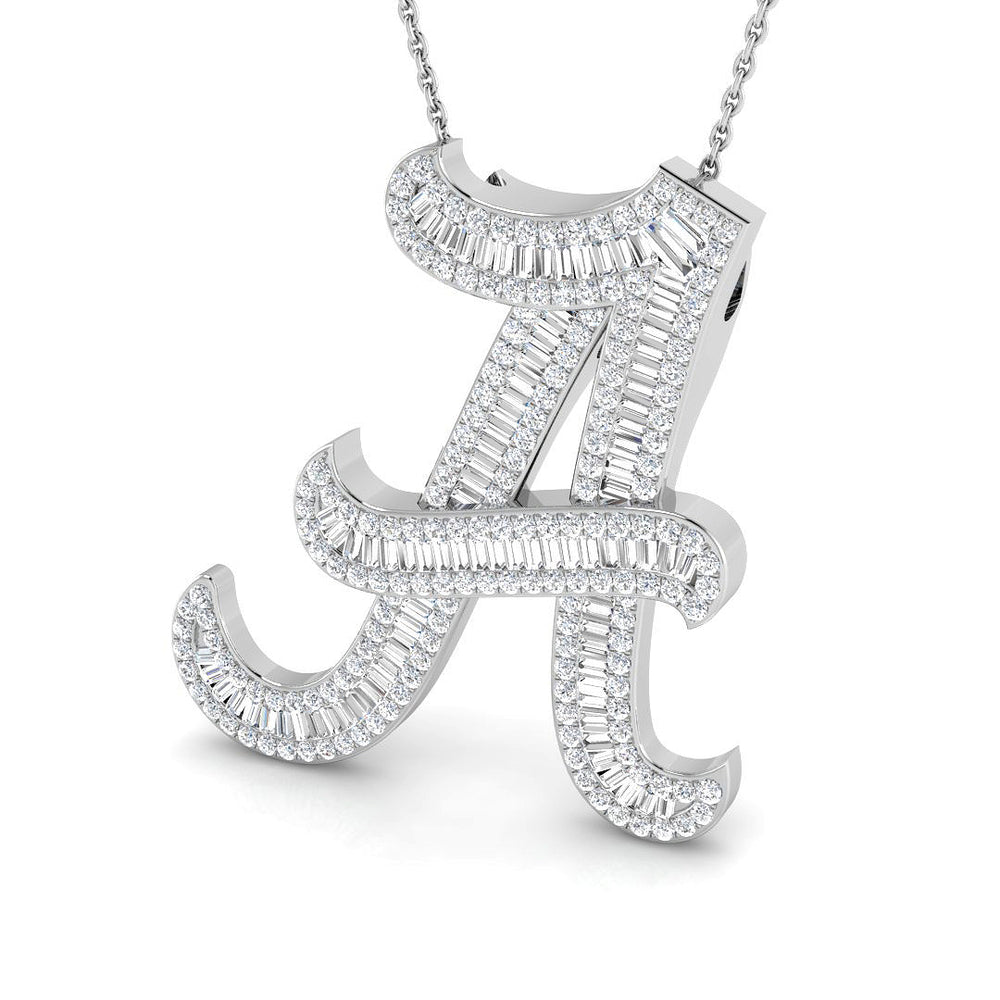 Verleihen Sie Ihrem Stil mit dem Diamant-Schriftzug-Anhänger ein besonderes Flair. Das elegante „A“ im Schreibschrift-Design ist mit Baguette- und Runddiamanten besetzt. Dieses stilvolle Schmuckstück eignet sich perfekt für jeden Tag oder als luxuriöses Geschenk für einen lieben Menschen.