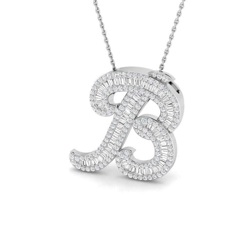 Verleihen Sie Ihrem Stil mit dem Anhänger „Diamant Script Initial“ das gewisse Etwas. Das elegante Schmuckstück besticht durch ein geschwungenes „B“, das mit Baguette- und Rundschliffdiamanten verziert ist. Es eignet sich perfekt für jeden Tag oder als luxuriöses Geschenk für einen lieben Menschen.