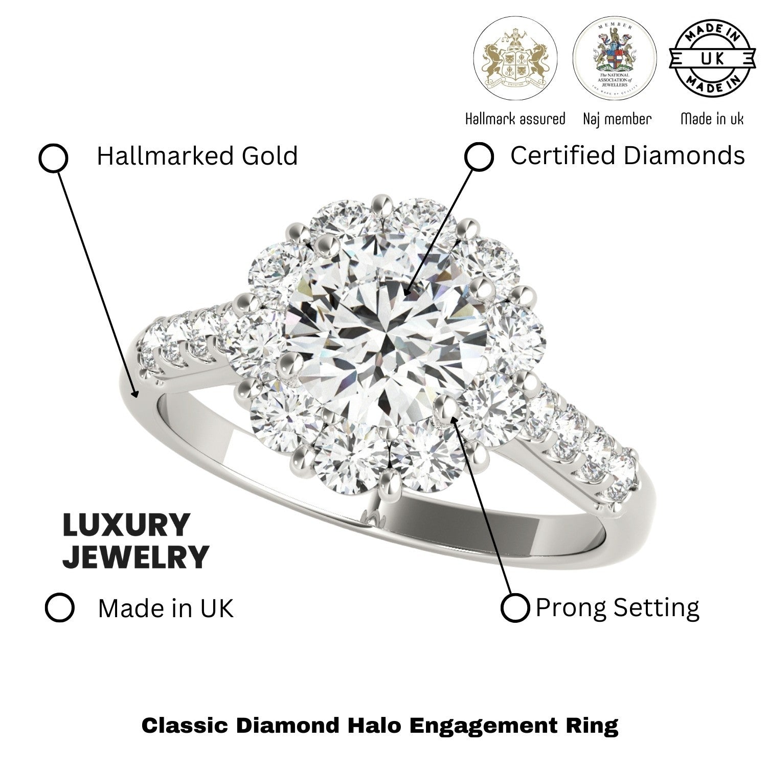 Available in 9K, 18K White, Yellow, Rose Gold, or Platinum, with total diamond weights ranging from 1.00Ct to 2.00Ct, each ring is handcrafted in the UK and hallmarked by the UK Assay Office for guaranteed quality and authenticity.