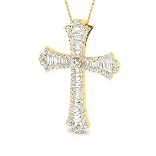 0.50ct – 6.50ct Baguette & Round Diamond Flared Cross Necklace in 9k and 18k Gold