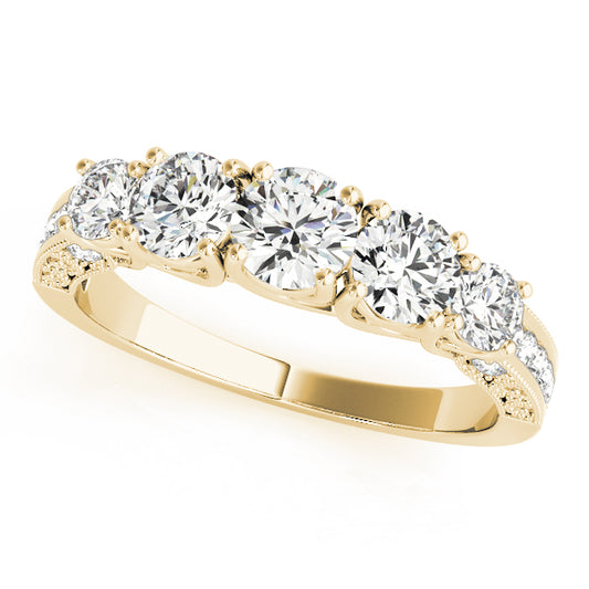 0.5Ct - 1.50Ct Round Lab-Grown Diamond Basket Style Shared Prong Setting 5-Stone Diamond Ring, DE Color VVS Clarity