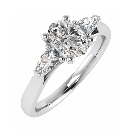 Oval Diamond and Pear Diamond Three Stone Engagement Ring