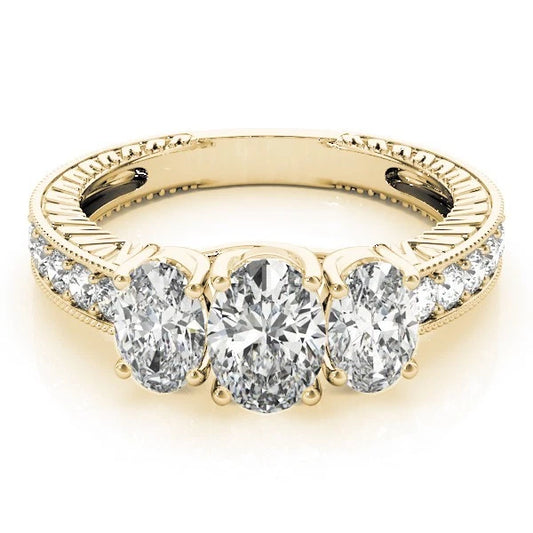 18k yellow gold Oval cut Trilogy Engagement Ring – 2Ct DE/VS Lab Grown Diamonds