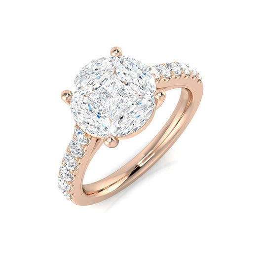 Natural Round Cut Diamond Marquis Shape Cluster Engagement Ring