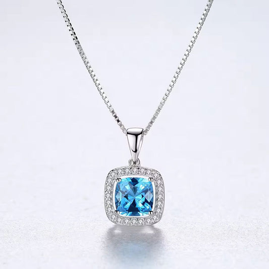 2.00Ct Blue Topaz and Lab Diamond Solitaire Cushion Necklace Pendant in Gold