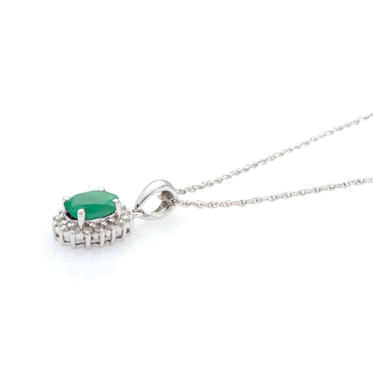 Oval Sapphire Diamond 18K White Gold Pendant