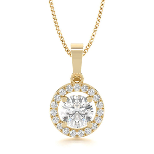 0.50Ct Round Lab Grown Diamond Halo Pendant Necklace in Gold
