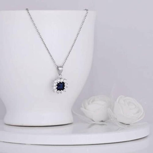 Round Shape Blue Sapphire Stone Necklace