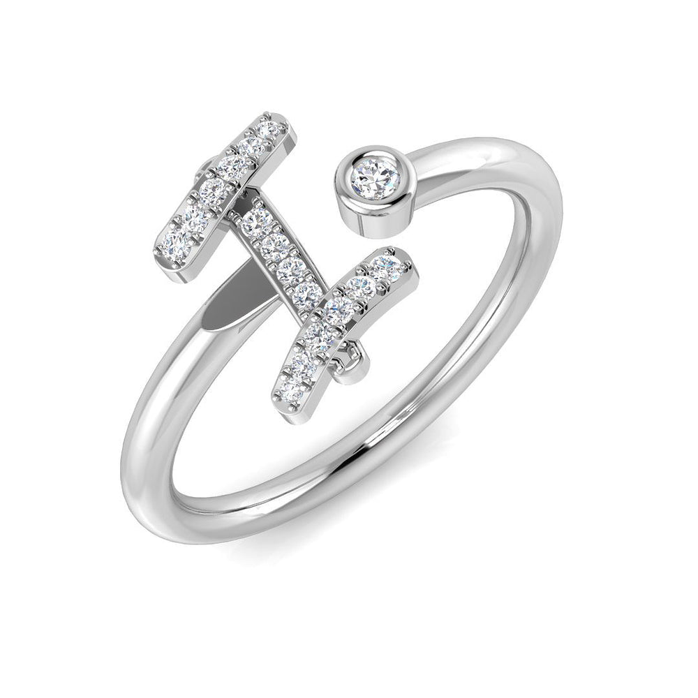 Add a touch of personal elegance with this beautifully designed script I initial ring, featuring 0.09 carat of round brilliant diamonds. The graceful letter “I” sparkles with micro pavé-set diamonds, while a bezel-set solitaire accent adds modern flair. Crafted in your choice of gold or platinum, this ring is the perfect expression of identity and style.