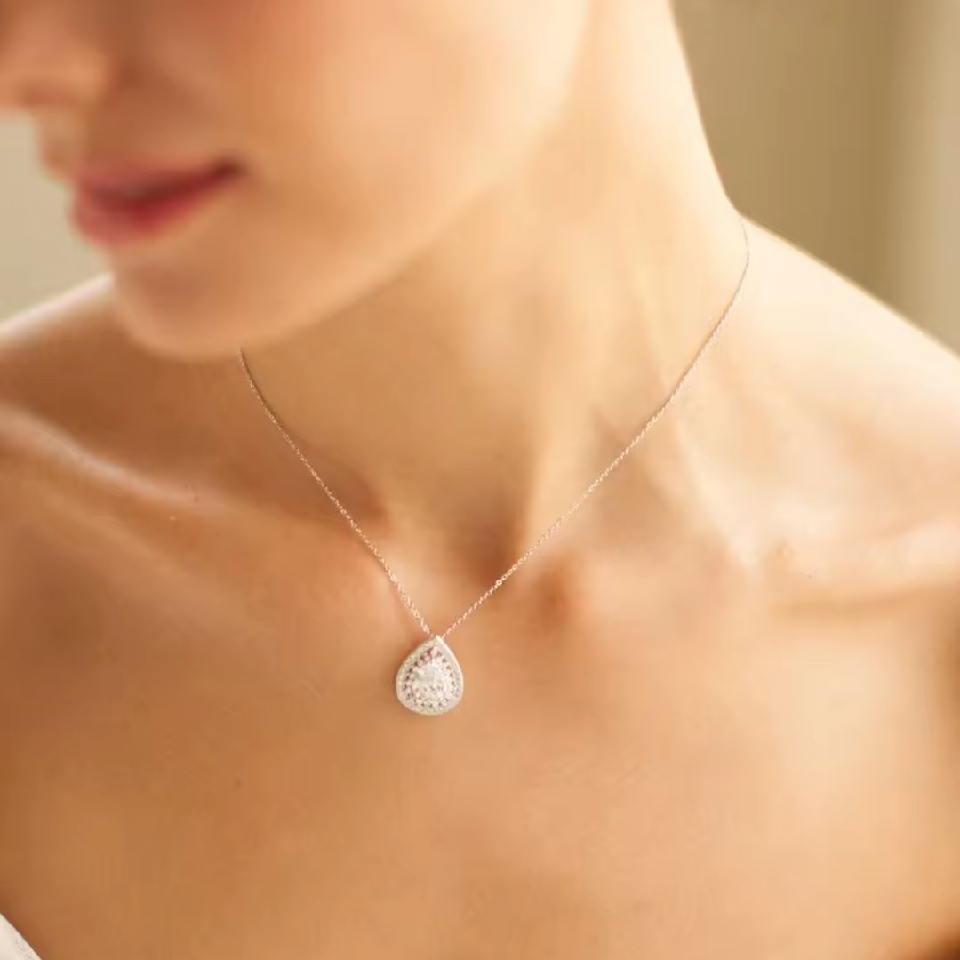 0.10ct Lab Diamond Pear Shape Halo Necklace
