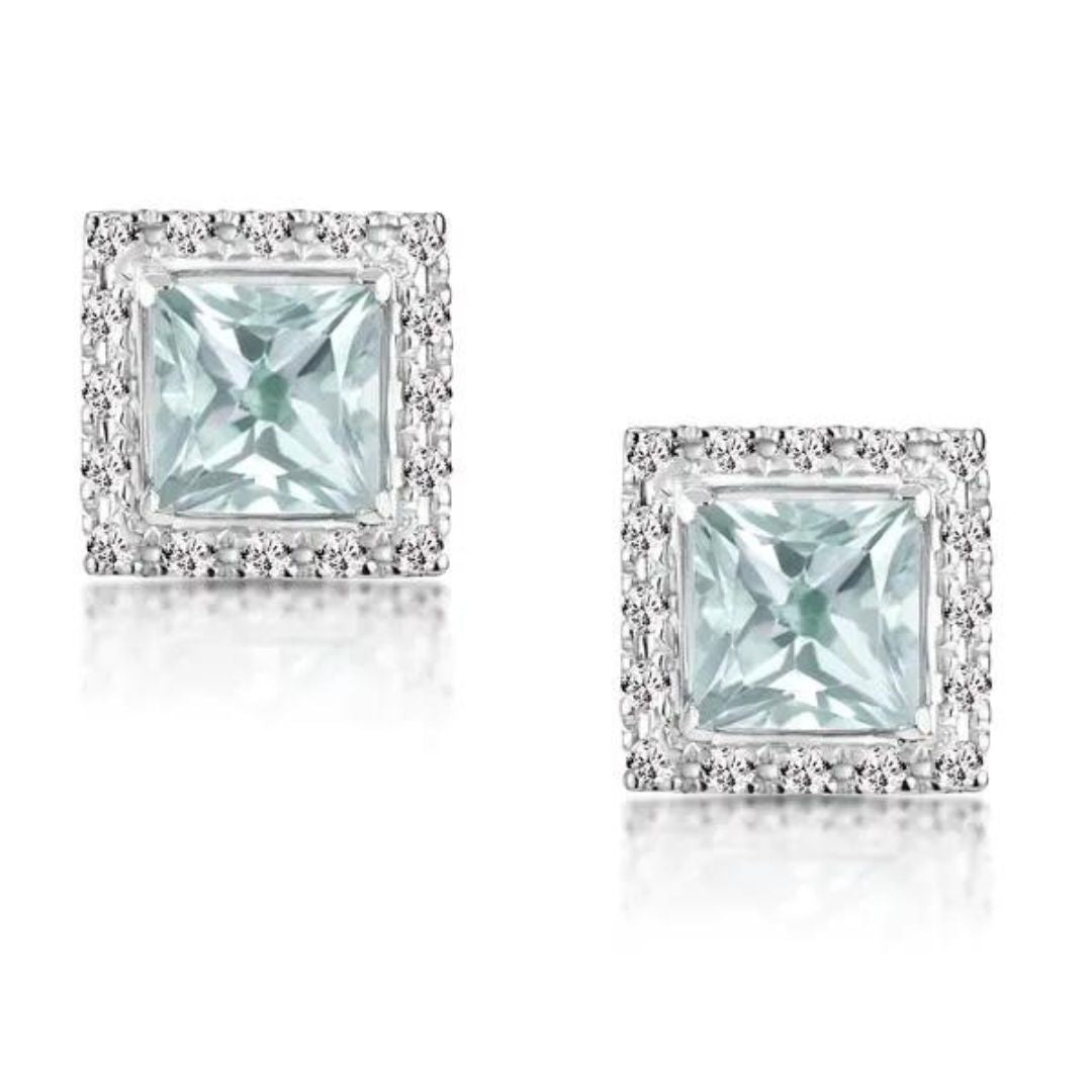 0.27Ct Lab Grown Diamond Solitaire Aquamarine Princess Halo Stud Earrings in Gold