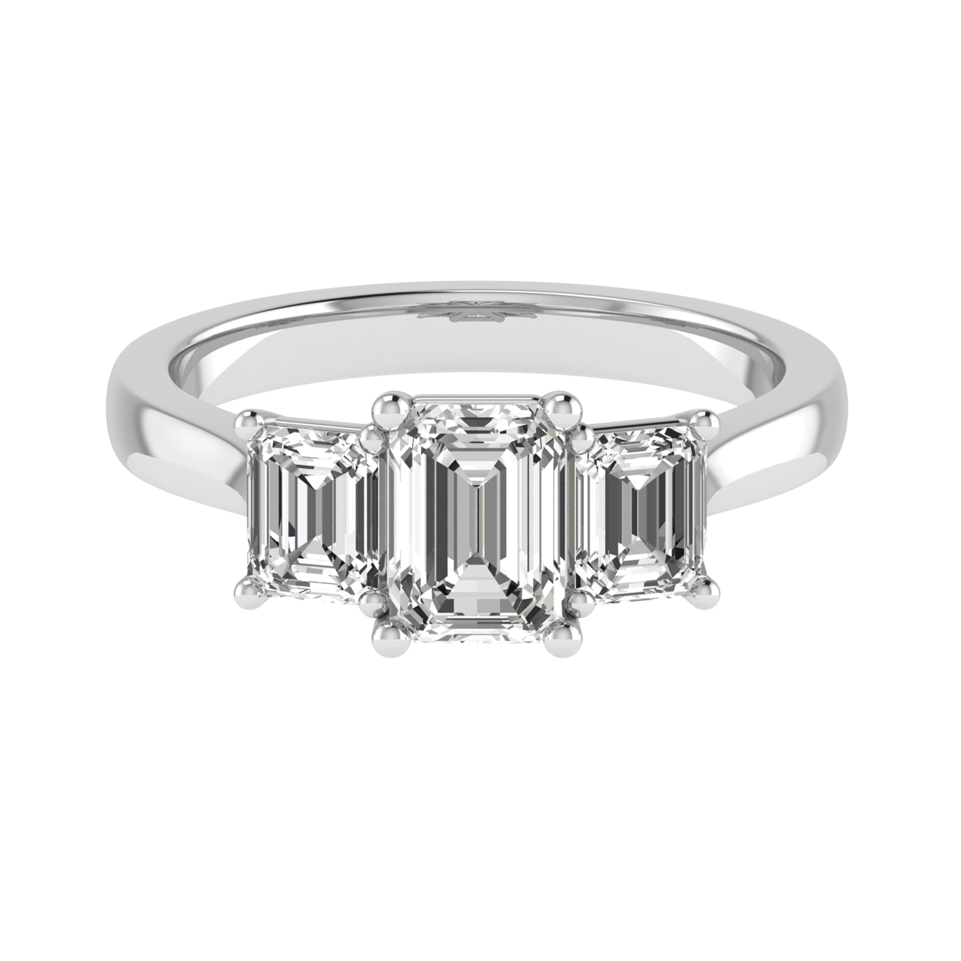 Discover the perfect symbol of your love with our 0.50 carat lab grown emerald diamond 3 stone engagement ring. Crafted with a stunning emerald shape and sparkling F/VS lab grown diamond, this ring shines in a claw setting of 9k gold and silver. Make a lasting statement of your commitment with this exquisite ring.
