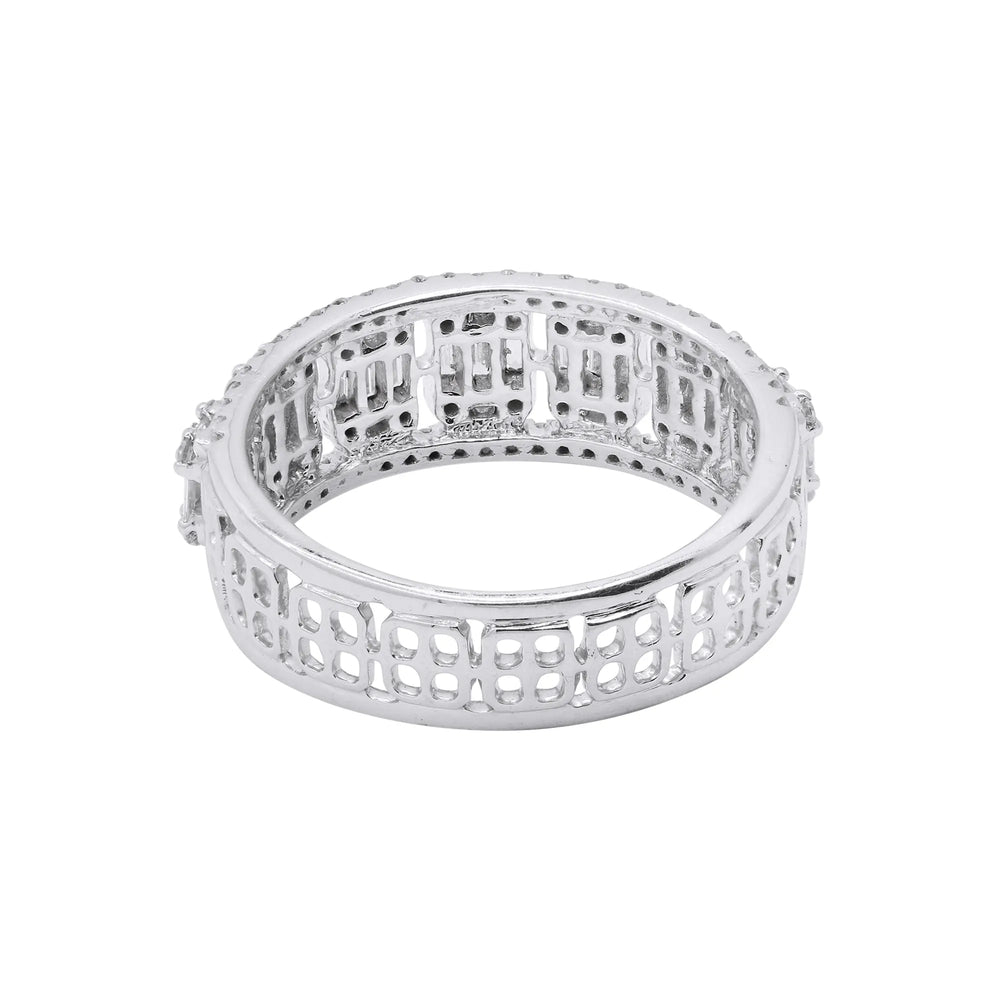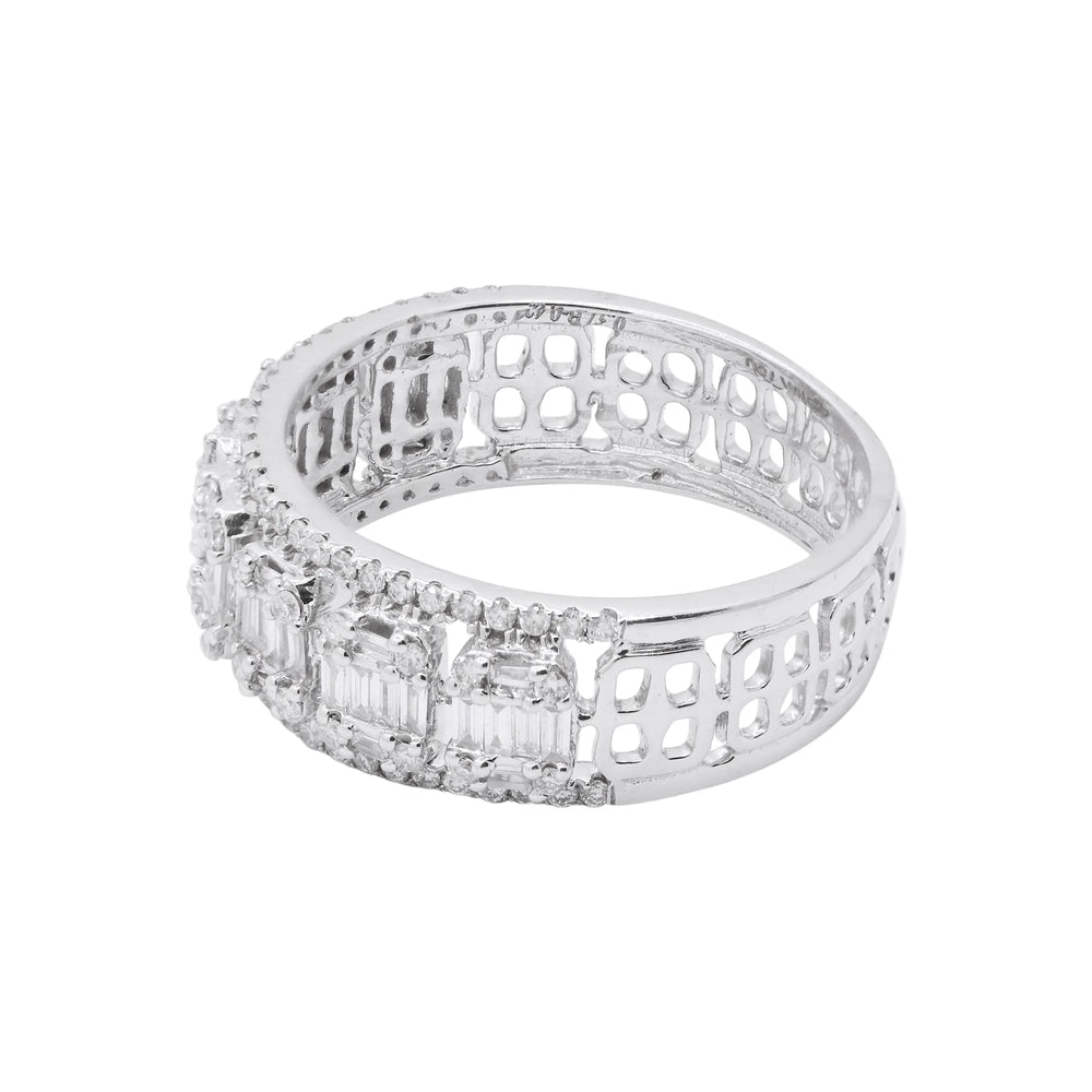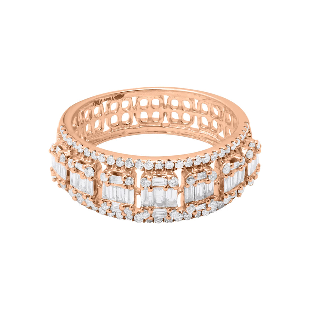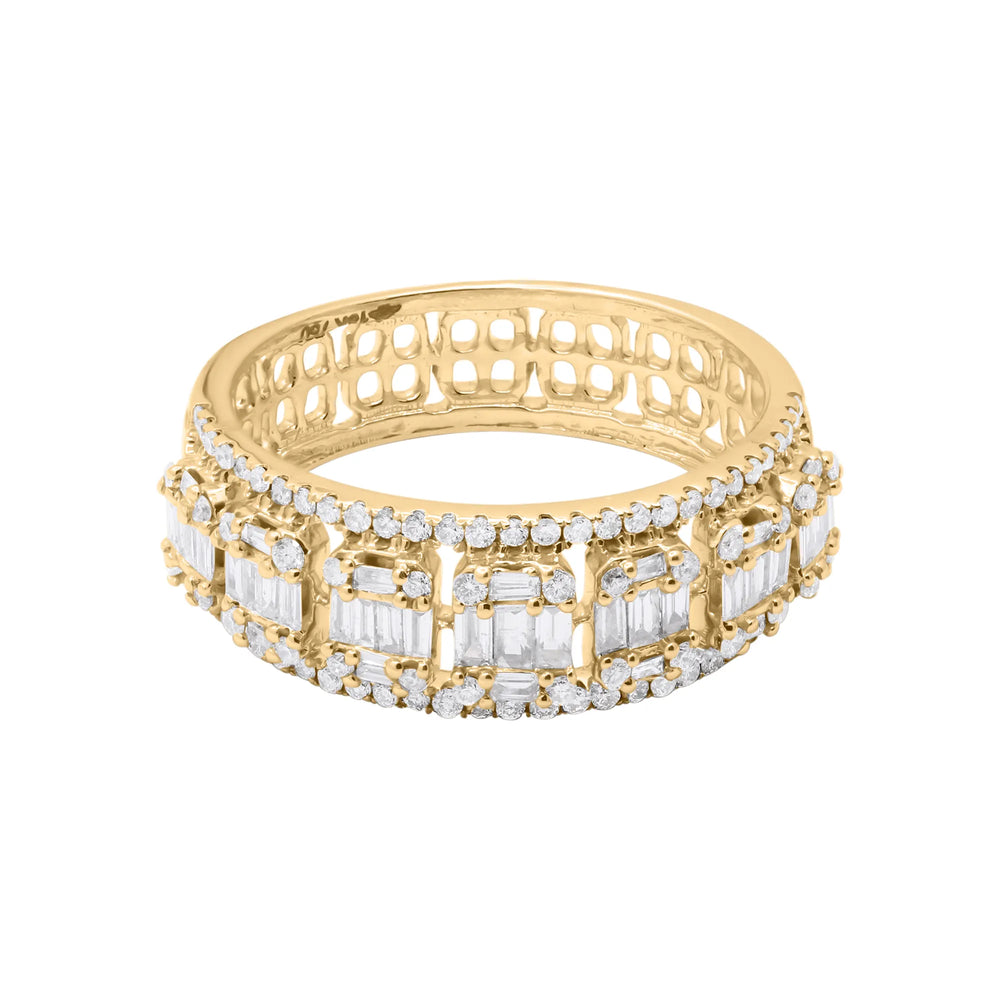 Fall in love with the timeless elegance of our 0.85 Carat F/SI Half Eternity Ring. Crafted with natural diamonds in baguette and round shapes, this stunning ring offers a luxurious 18k gold or platinum setting. Make a lasting impression with this half eternity ring that sparkles with every movement.
