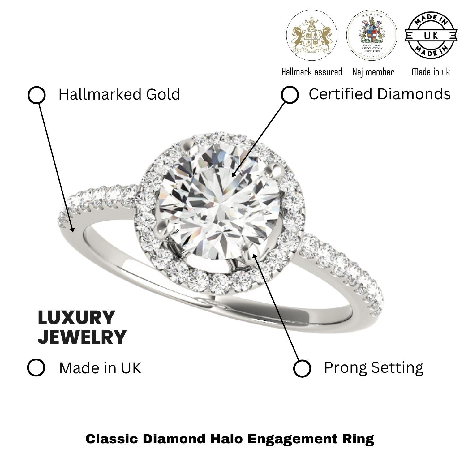 Available in 9K, 18K White, Yellow, Rose Gold, or Platinum, with total diamond weights ranging from 0.50Ct to 2.00Ct, each ring is handcrafted in the UK and hallmarked by the UK Assay Office for guaranteed quality and authenticity.