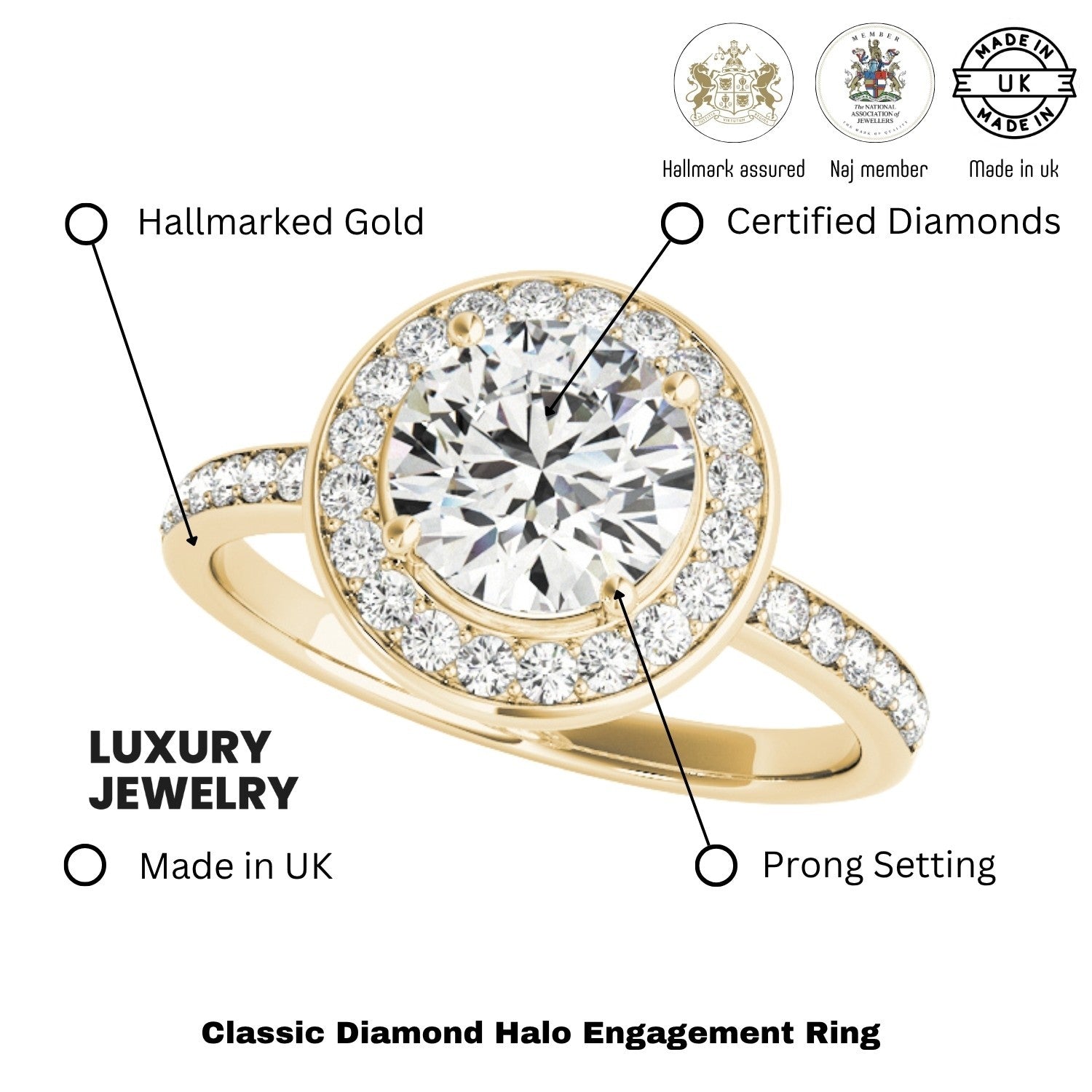 Lab Grown Round Diamond Halo Engagement Ring 18K Yellow Gold