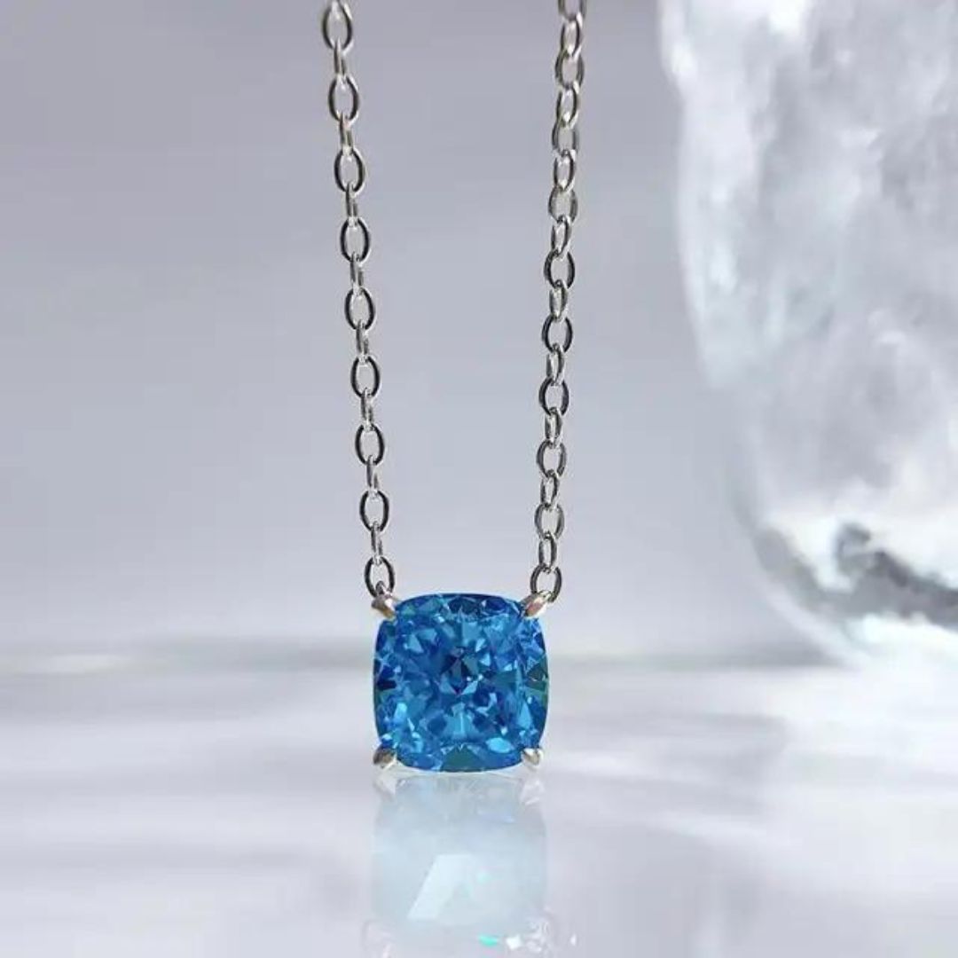 2.40Ct Lab Created Cushion Sapphire Solitaire Pendant in White Gold