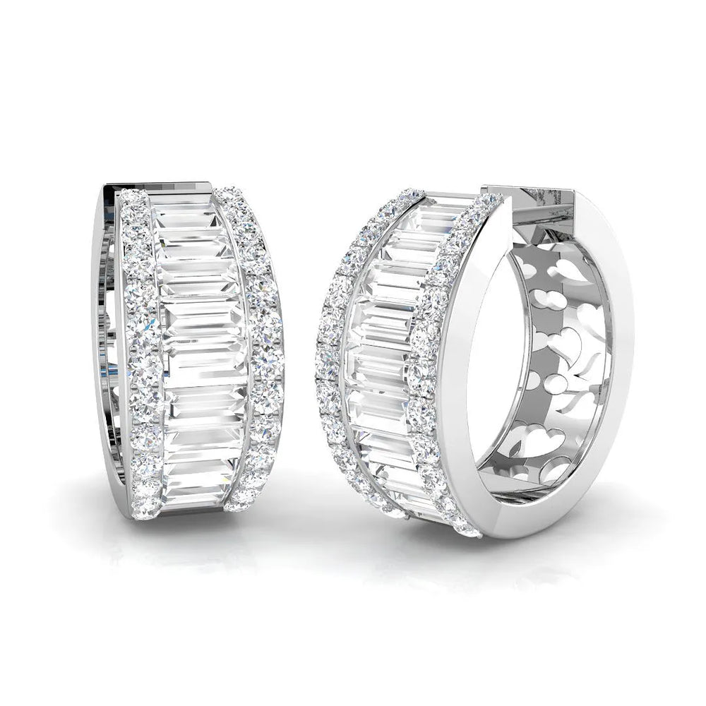 Add timeless elegance to your collection with these stunning Baguette & Round Cut Diamond Hoop Earrings. Featuring a total diamond weight of 1.50 to 2.50 Ct, these earrings combine the brilliance of Natural and Lab-Grown Diamonds. The Baguette diamonds are set in a bezel setting, while the Round diamonds are intricately set in a pavé setting, creating a radiant design. Available in your choice of 9K/18K White, Yellow, Rose Gold, or Platinum, these earrings are expertly handcrafted for sophistication and lasting beauty.