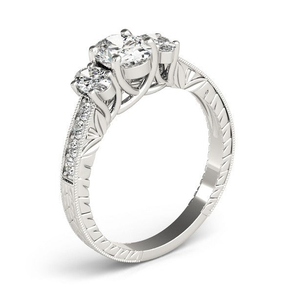 💍 Product Overview – Oval Cut Trilogy Ring with Milgrain Art Deco Detailing