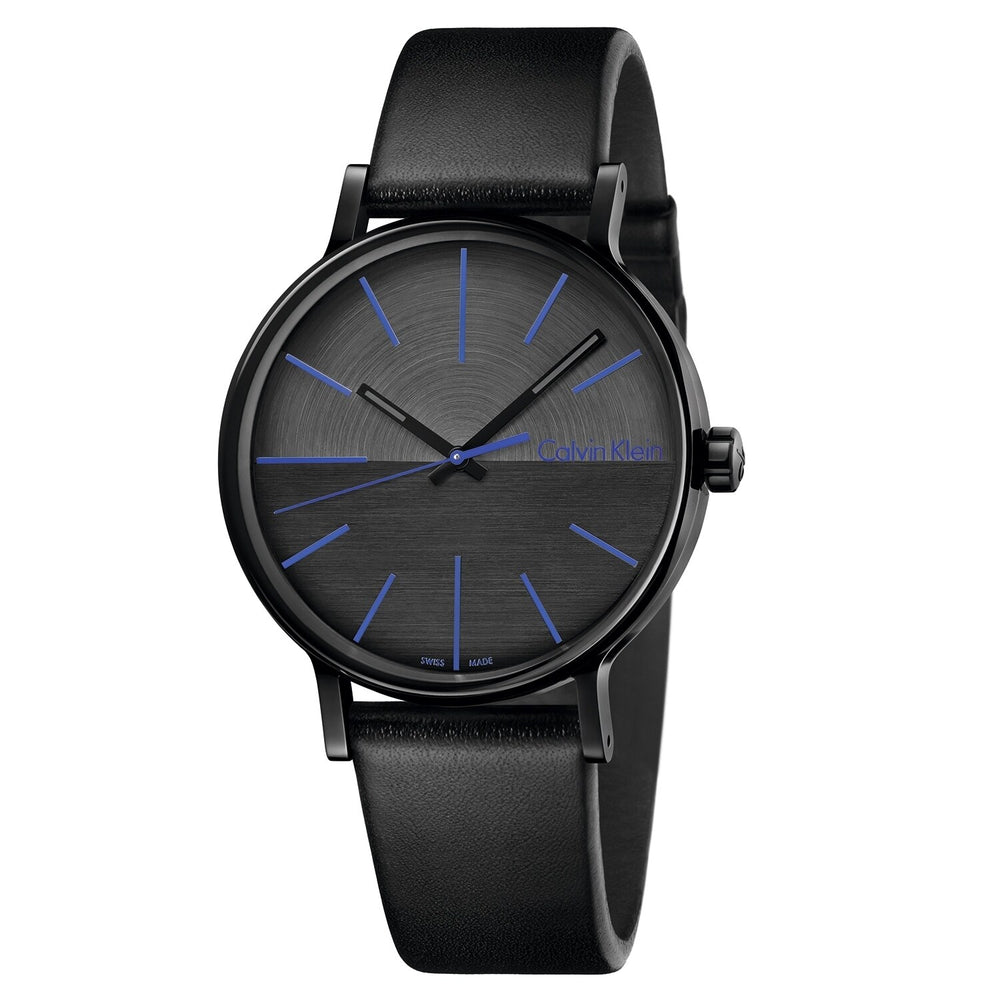 The Calvin Klein Boost Blue Stick Index Men’s Watch blends bold design with Swiss precision. Featuring a polished stainless-steel case coated in black PVD, this timepiece stands out with a sleek black sunburst dial and striking blue stick hour markers. The genuine black leather strap and Swiss quartz movement ensure both comfort and reliability.