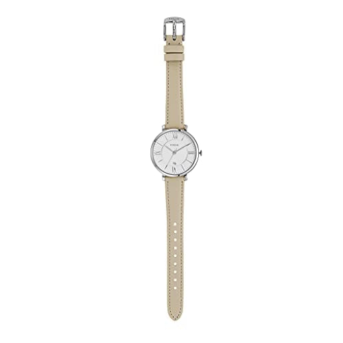 Fossil Women's Jacqueline Quartz Stainless Steel and Leather Three-Hand Date Watch, Color: Silver, White (Model: ES3793)