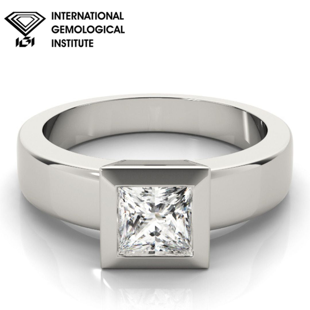 IGI Lab-Grown Princess Cut Diamond D-VVS Solitaire Bezel Set Engagement Ring.