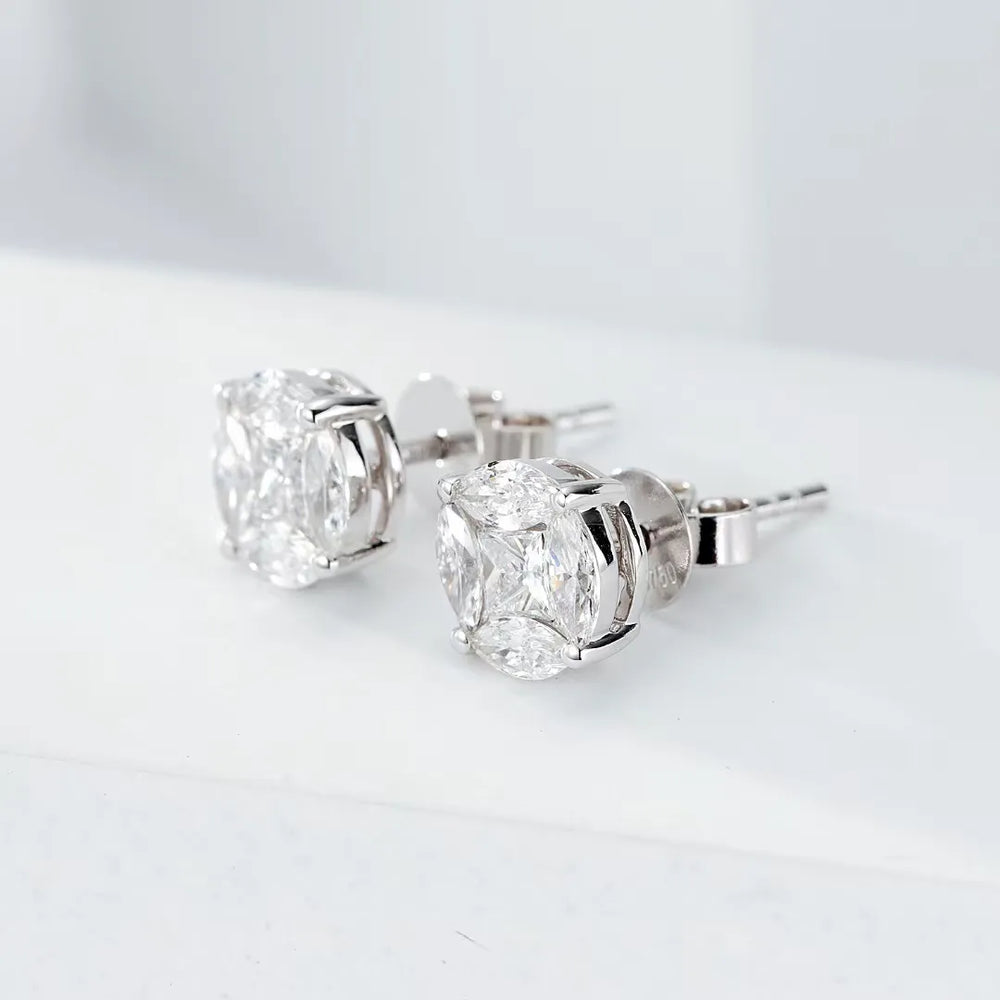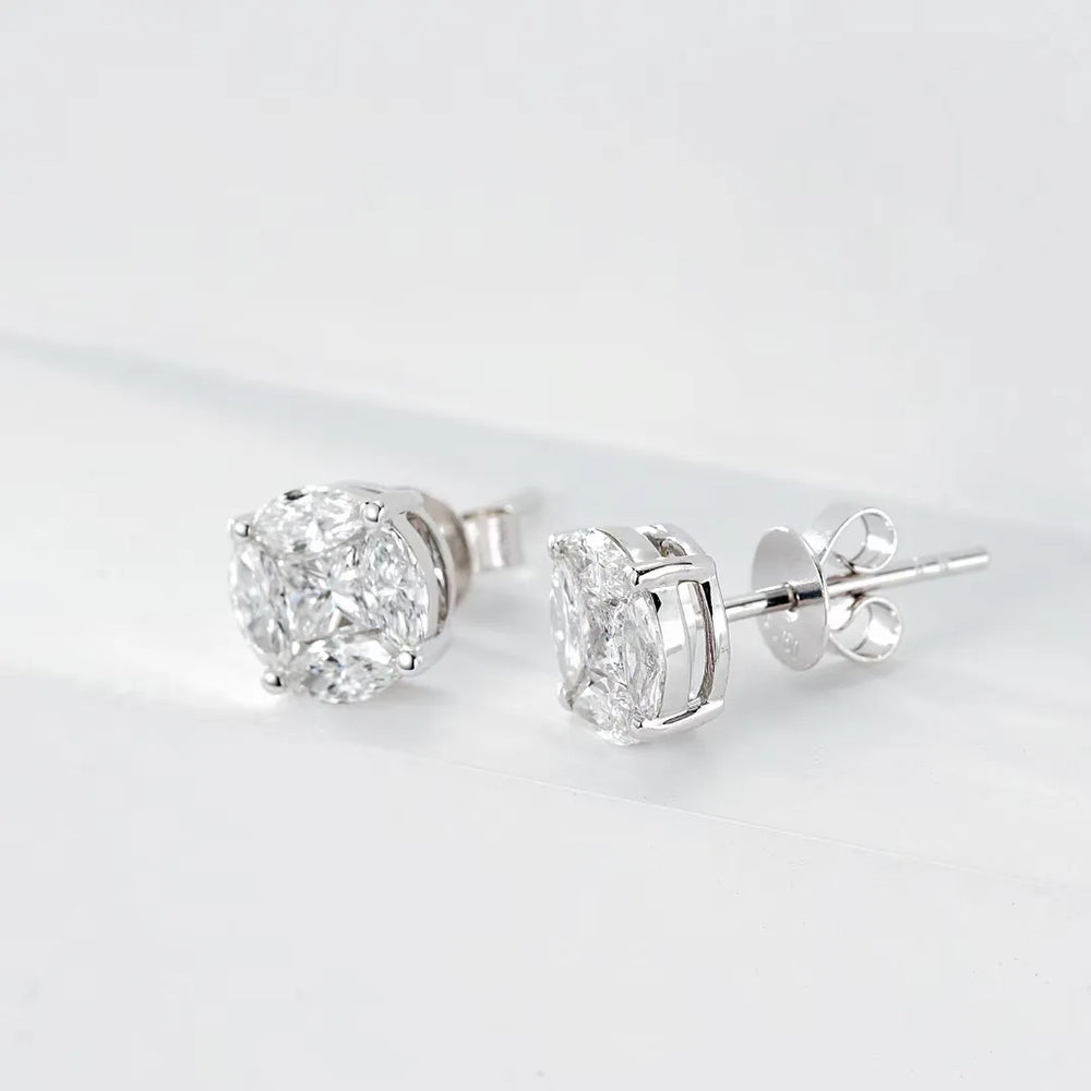 Experience the luxury and brilliance of a single round diamond with our unique design. Setting smaller marquise and princess diamonds in F/SI grade, we create the illusion of a larger, multi-carat diamond. Our natural diamonds are placed in an 18k gold or platinum claw setting for added elegance.