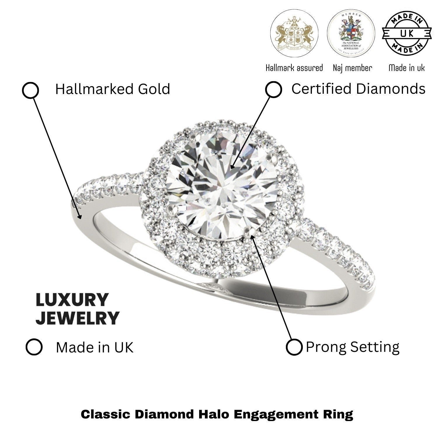 Available in 9K, 18K White, Yellow, Rose Gold, or Platinum, with total diamond weights ranging from 0.50Ct to 2.00Ct, each ring is handcrafted in the UK and hallmarked by the UK Assay Office for guaranteed quality and authenticity.