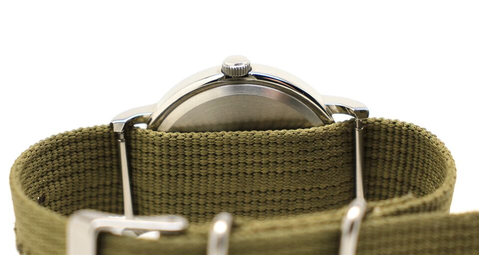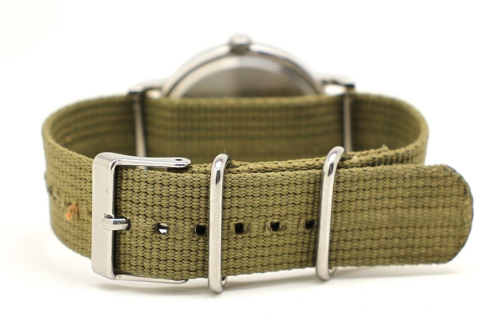 - Adjustable black 20 millimetre nylon slip-thru strap
