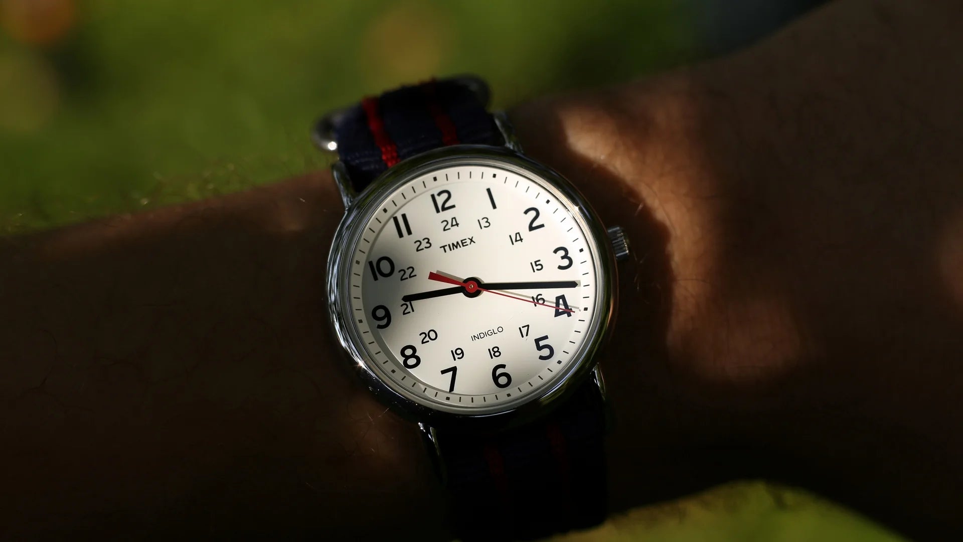- Silver-tone 38 millimeter brass case with mineral glass crystal