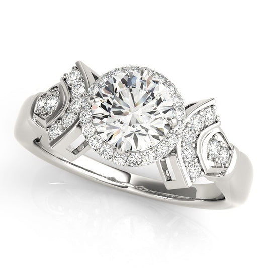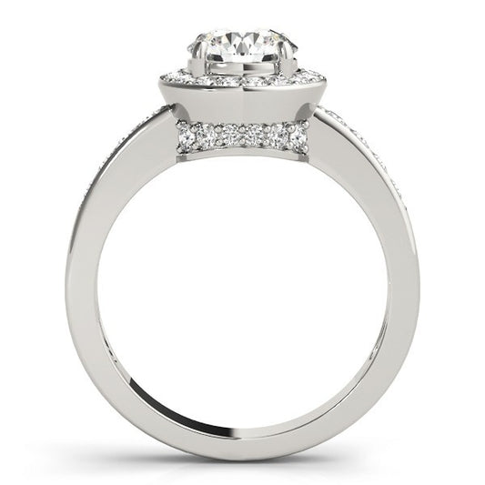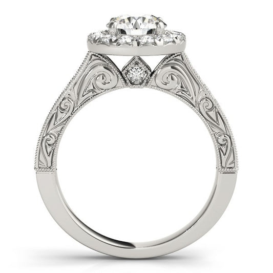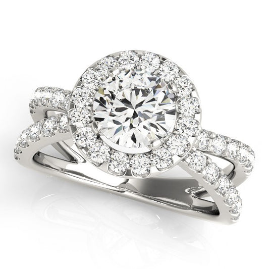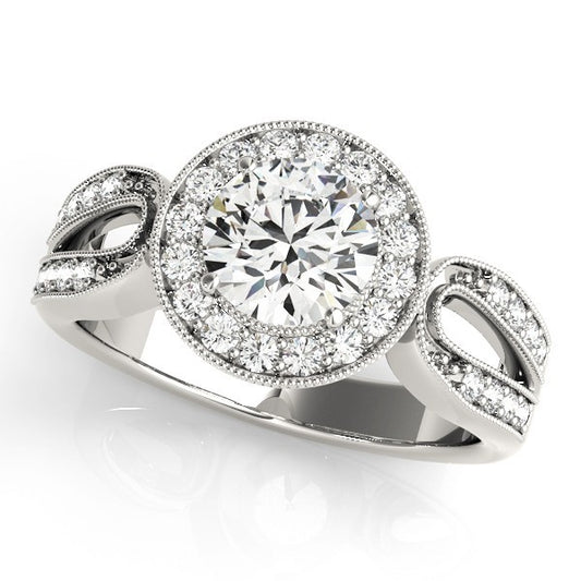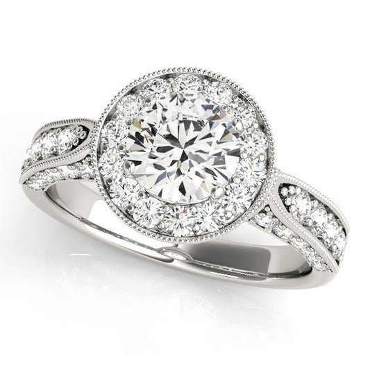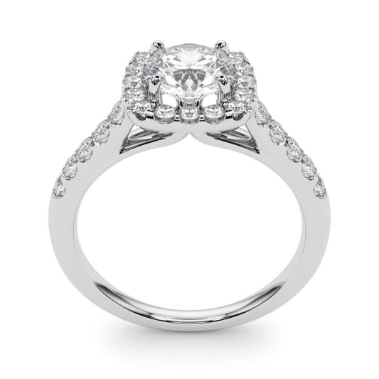 Lab Grown Round Diamond Halo Engagement Ring 18K White Gold