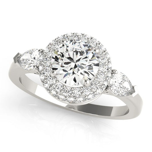 3.00 Carat Lab Grown Round Cut Diamond Halo Engagement Ring 18K White Gold