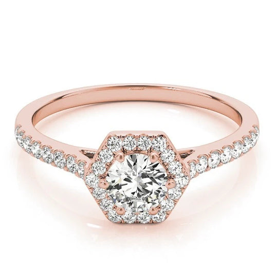 Lab Grown Round Diamond Halo Engagement Ring 18K Rose Gold