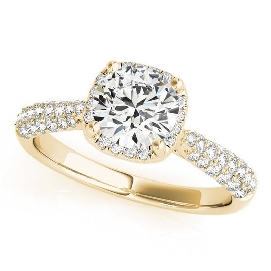 Lab Grown Round Diamond Halo Engagement Ring 18K Yellow Gold