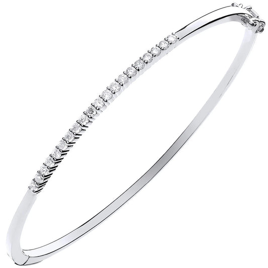 0.50Ct Natural Round Cut Diamond Claw-set Bangle in White Gold