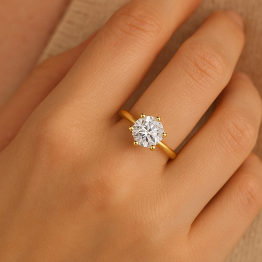 IGI Lab-Grown Solitaire Engagement Ring, Six Claw Set Round Cut Diamond Ring, D Color VVS Clarity