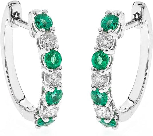 0.06Ct Lab Grown and Emerald Diamond Silver Hoop Earrings