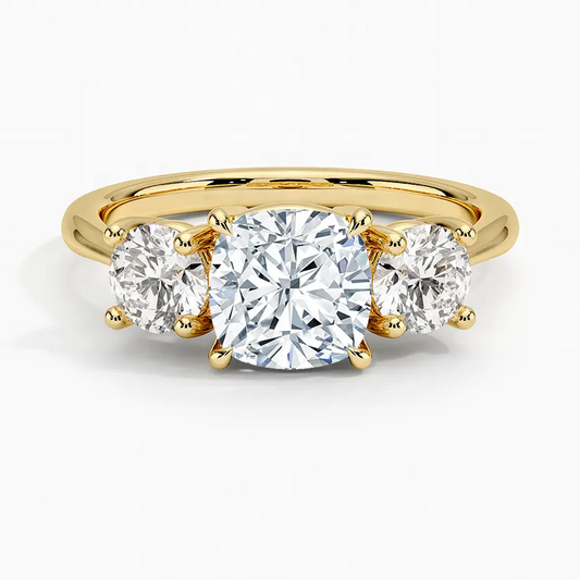Natural Cushion Shape Diamond 3 Stone Engagement Ring