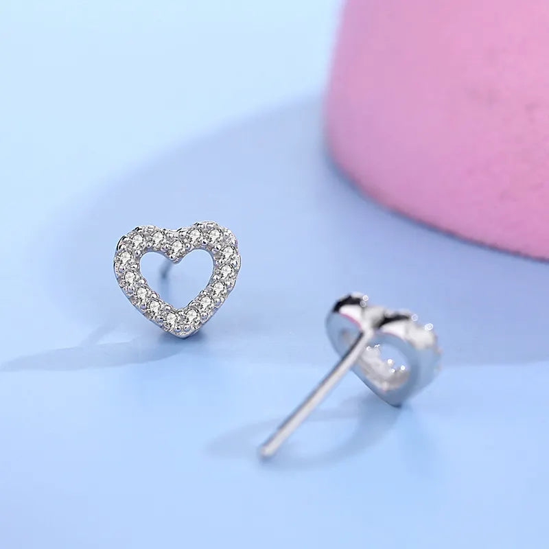 Add a touch of love and sparkle to your outfit with our 0.10 carat round shape diamond heart stud earrings. Crafted with 9k gold and featuring a pave setting, these natural diamonds shine with F/SI clarity. Make a statement that lasts with our stunning heart stud earrings!
