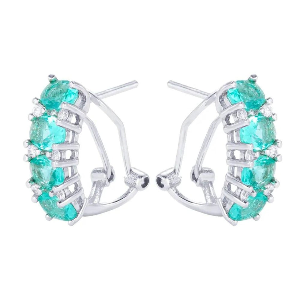 This passage describes a pair of elegant earrings made by master jewellers. The earrings feature emeralds and lab-grown diamonds set in handcrafted sterling silver. The lab-grown diamonds are described as real diamonds that offer great value for money and are an ethical choice. The earrings have a total diamond weight of 0.16 carats and feature a main stone that is a combination of emerald and lab-grown diamond. The emerald size is approximately 1.10 carats, and the main stone shape is round. The metal used is silver, and the diamond quality is described as premium. The setting is a claw setting, and the earrings are handcrafted in the UK using conflict-free and nickel-free materials. The passage also mentions that the weights, gem colors, and sizes are approximate and may vary slightly. Customers have the option to choose between sustainable lab-grown diamonds or certified mined diamonds for their earrings.